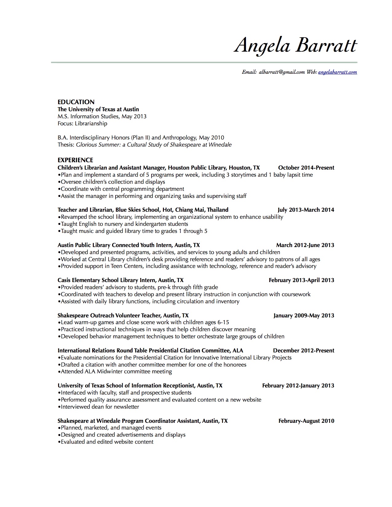 Angela Barratt’s resume